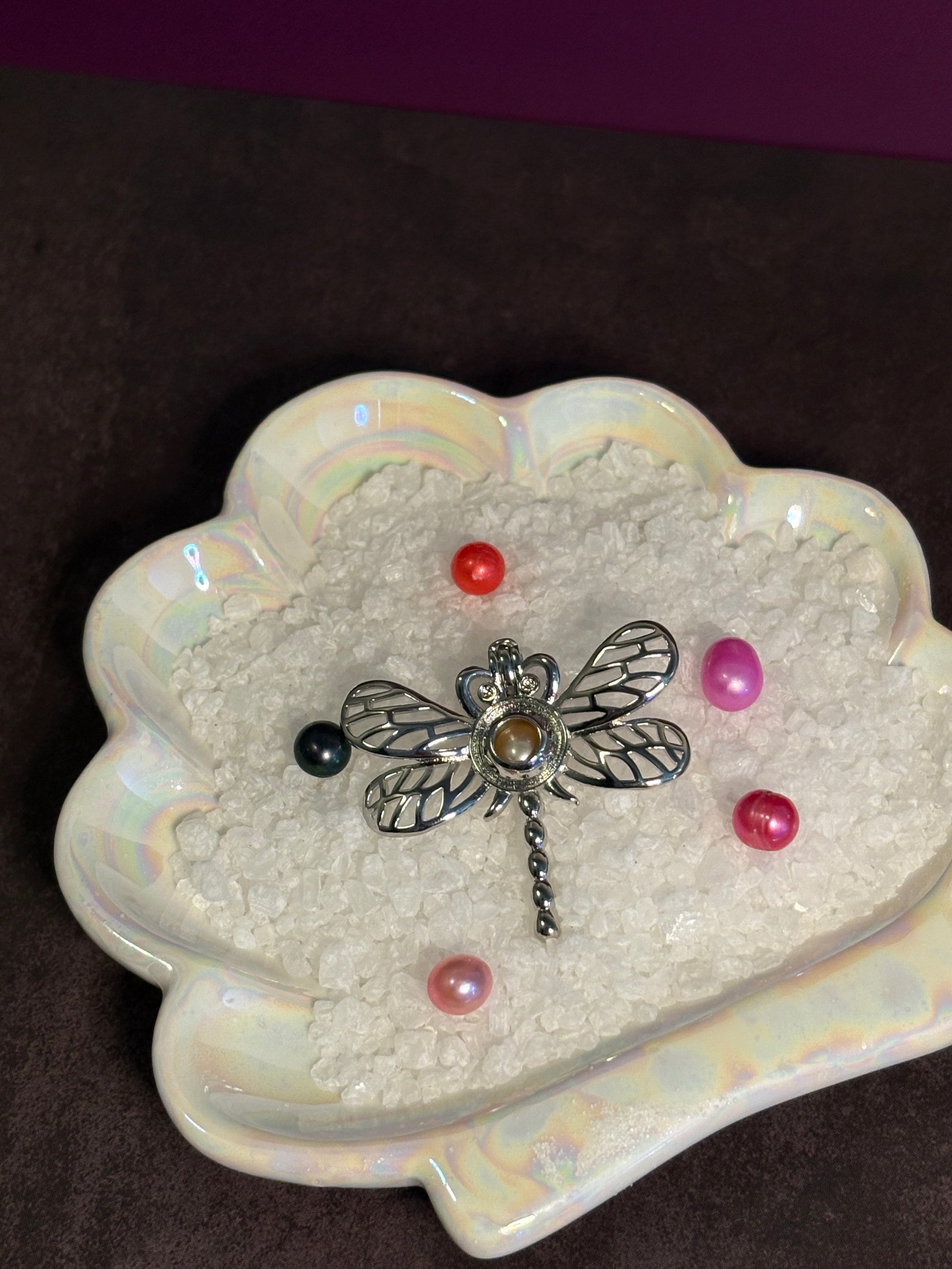 Embrace the beauty and grace of nature with our Dragonfly Dream cage pendant. This stunning piece features a large, intricately designed dragonfly, where the pearl serves as its delicate, shimmering body. The wings, crafted with exquisite detail, add a touch of elegance and movement, capturing the essence of the dragonfly's graceful flight. A perfect symbol of transformation and beauty, this pendant makes a bold statement while showcasing the natural wonder of the pearl within.