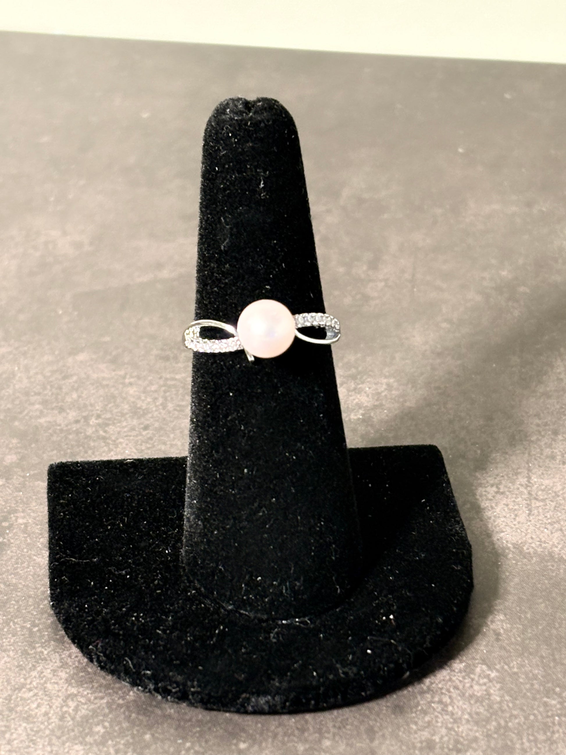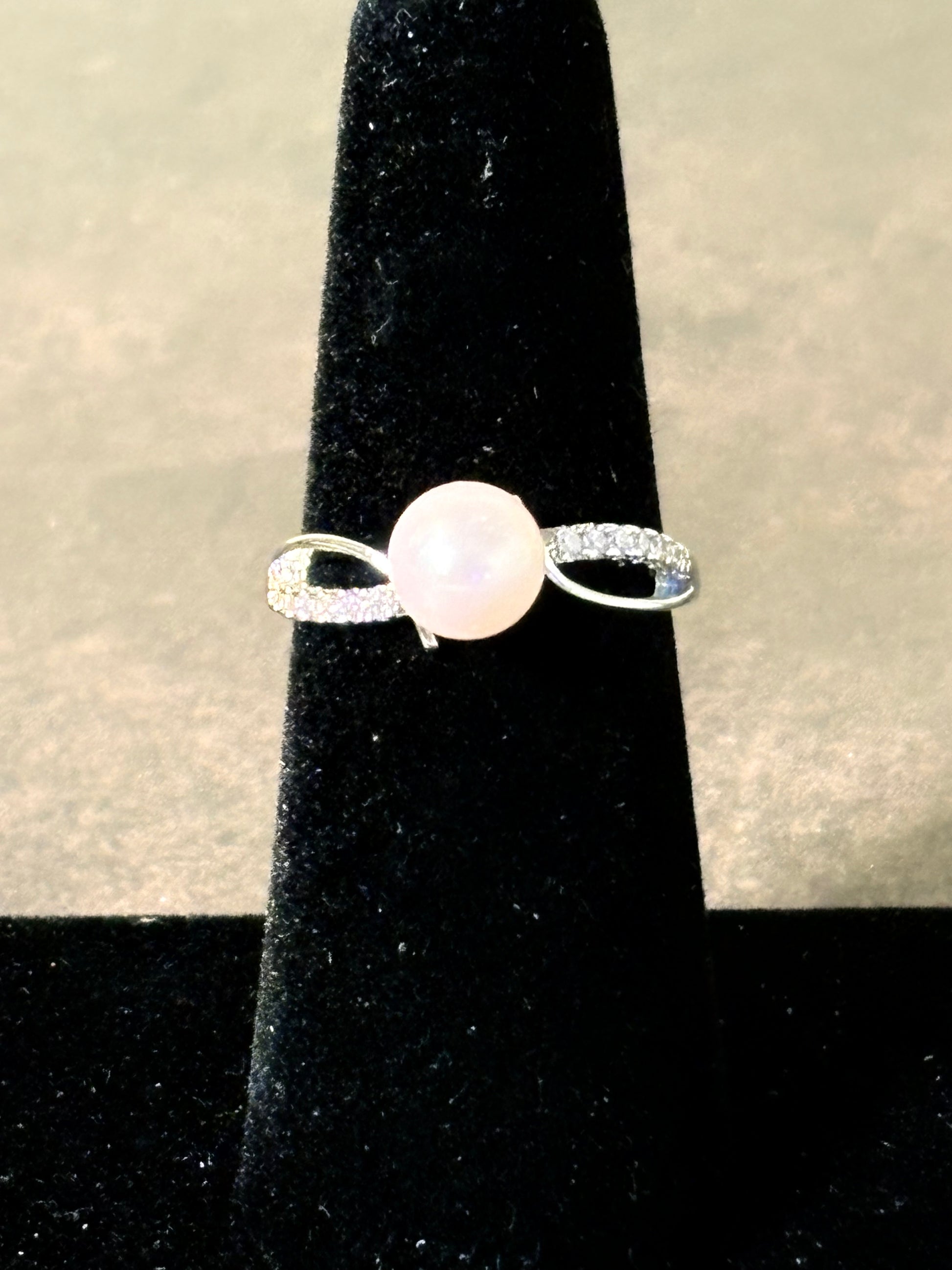 A graceful twist, a glowing center. This elegant adjustable ring features a soft, flowing band that curves gently around a luminous pearl—offering the feel of an infinity design without a closed loop. Symbolizing continuous beauty and quiet strength, it’s a timeless piece that adds a touch of meaning and magic to any look.