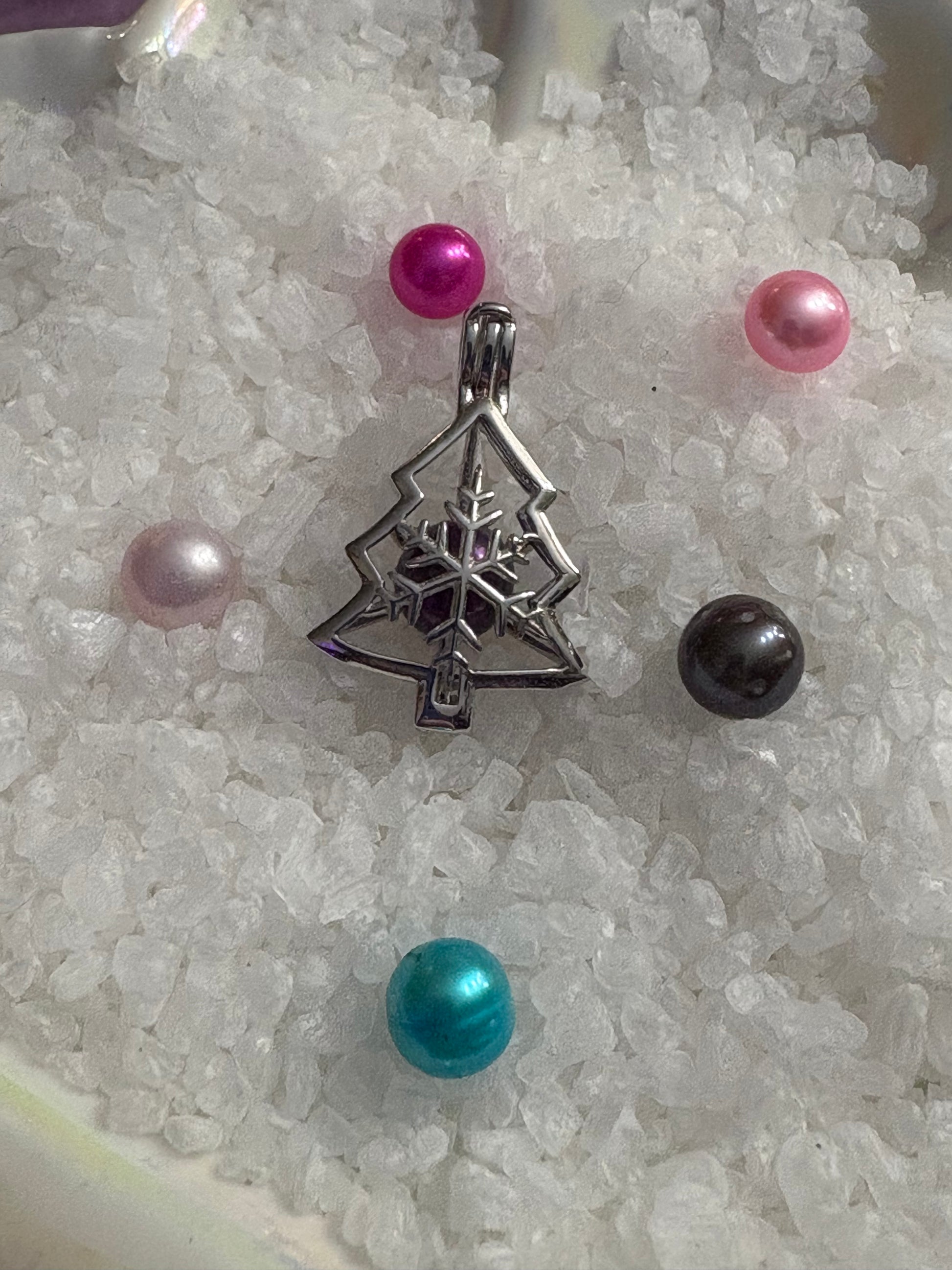 Celebrate the magic of the holiday season with the Snowflake Pine Pendant Cage. This sterling silver Christmas tree cage features a sparkling snowflake at its center, designed to hold a luminous pearl inside. Whimsical, festive, and collectible, it’s the perfect piece to add sparkle and charm to your holiday look or gift to someone special.