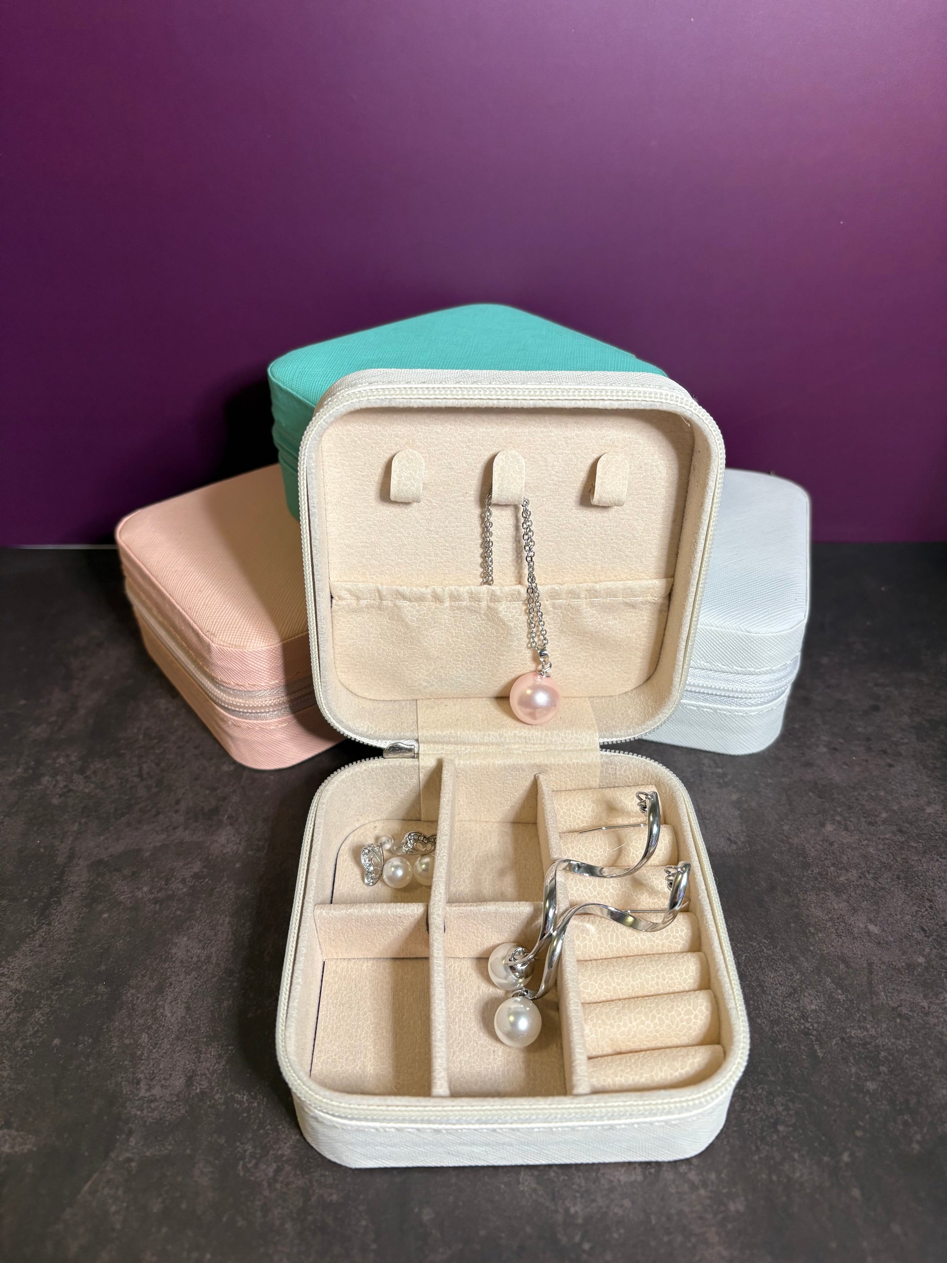 Keep your treasures safe and organized on the go with this compact travel jewelry box. Designed with soft lining and divided compartments, it’s perfect for storing rings, earrings, necklaces, and more. Lightweight yet protective, it fits easily in your purse, suitcase, or overnight bag—so your sparkle travels with you.