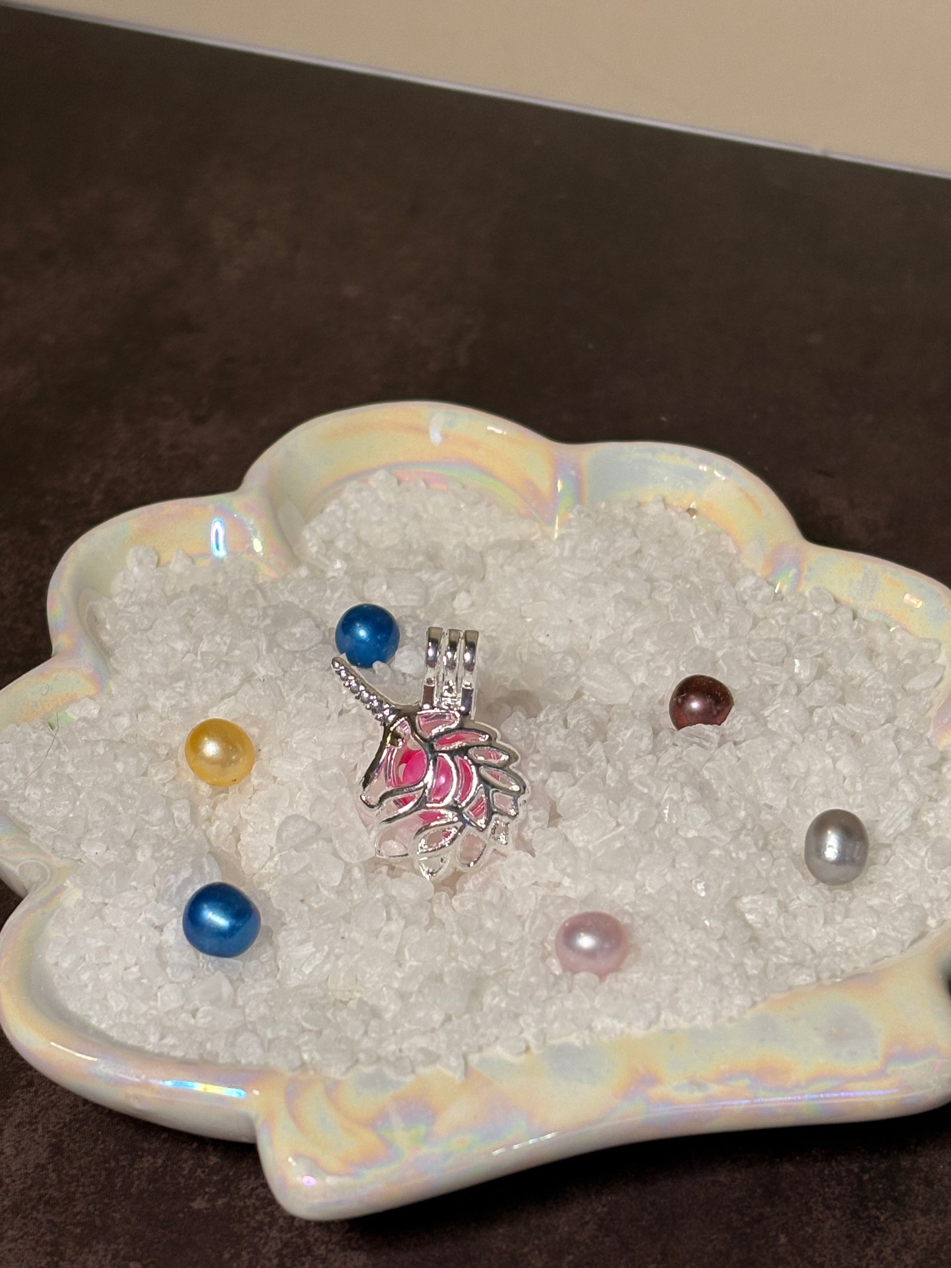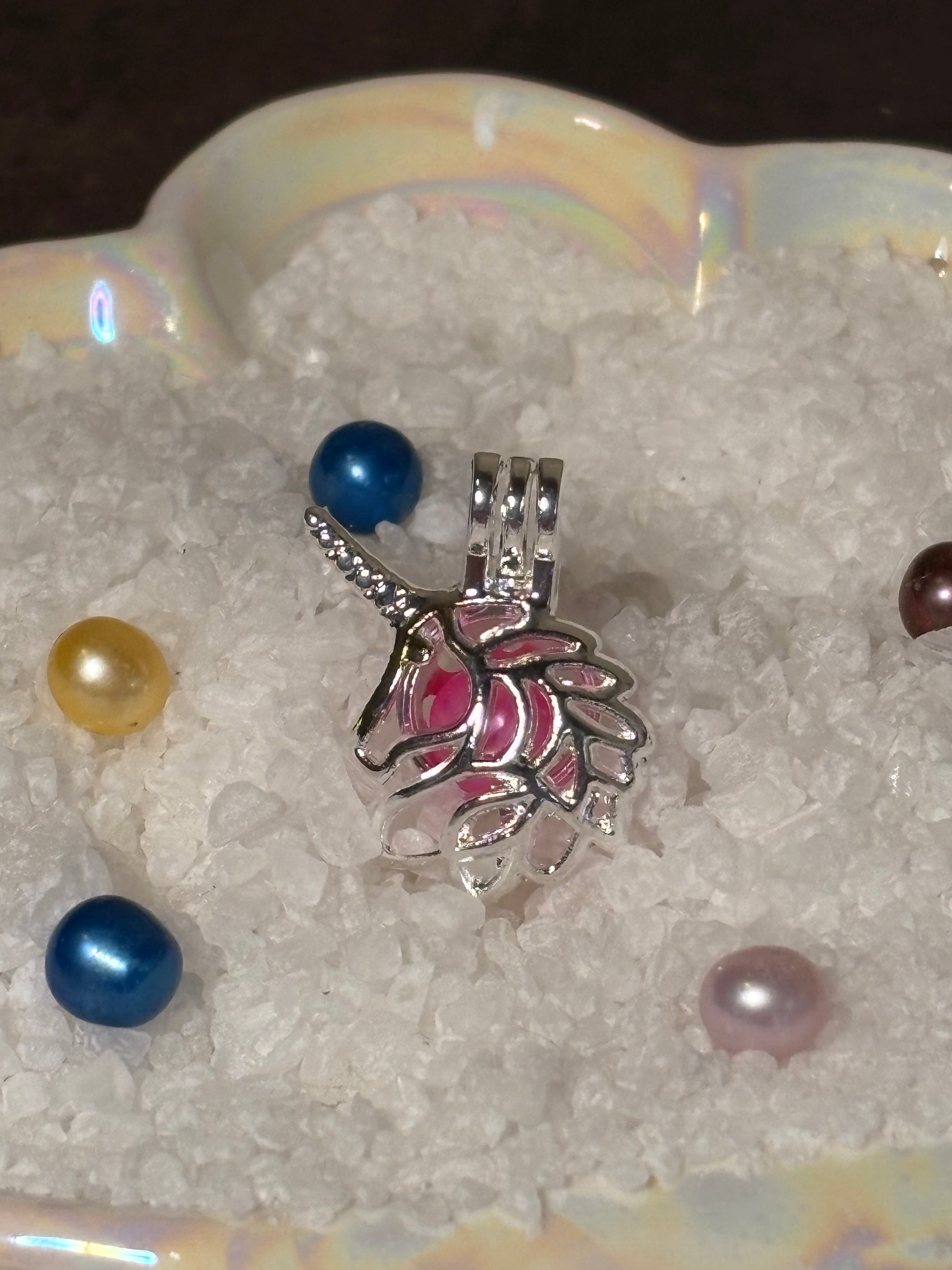 Bring a touch of magic to your collection with this enchanting unicorn pendant cage! Crafted with whimsical detail, it’s designed to hold a pearl or tiny treasure inside—making it as meaningful as it is magical. A perfect gift for dreamers, believers, and lovers of all things sparkly.